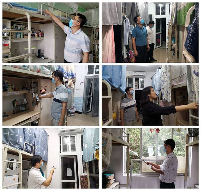为迎接第二批学生返校复学,5月27日-28日,丁喆带领辅导员深入北区、南区60间学生宿舍检查安全卫生情况,帮助通风换气、清理垃圾,及时报修发现的水电问题,全力保障学生健康平安。