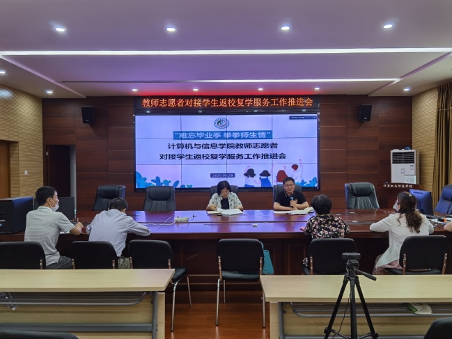5月28日下午,计算机与信息学院在宝铃楼103教室召开“难忘毕业季 拳拳师生情”教师志愿者对接学生返校复学服务工作推进会,学院党政领导、教师志愿者、班主任、辅导员等线上线下参加了会议。