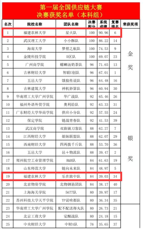 第一届全国供应链大赛决赛获奖名单(本科组)