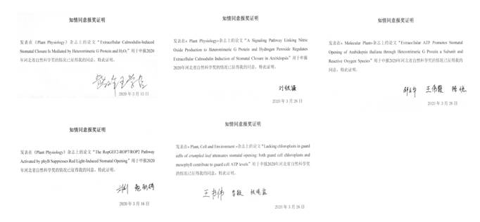 根据河北省《关于2020年度河北省科学技术奖提名工作的通知》的要求,我校王巍参与的成果“光及两种植物内源信号分子调节气孔运动的机制”,拟申报2020年度河北省科学技术奖。现将该项目的有关情况予以公示(具体附后)。
