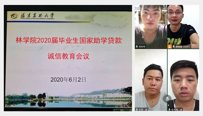 6月2日,林学院通过腾讯会议线上召开2020届毕业生国家助学贷款诚信教育会议,辅导员谢国富主持,2020届校园地助学贷款学生参加。