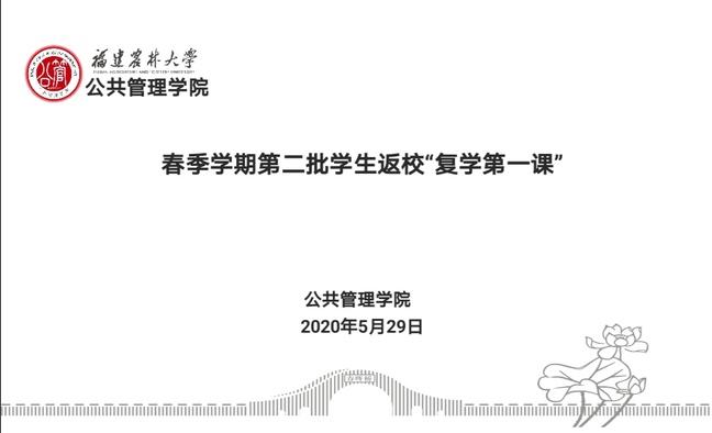 按照学校部署安排,5月29-31日是我校第二批学生返校复学时间,5月29日,公共管理学院在腾讯会议平台开展了春季学期第二批学生“返校复学第一课”。学院党委副书记陈建辉讲课,辅导员、毕业全体同学参加课程。