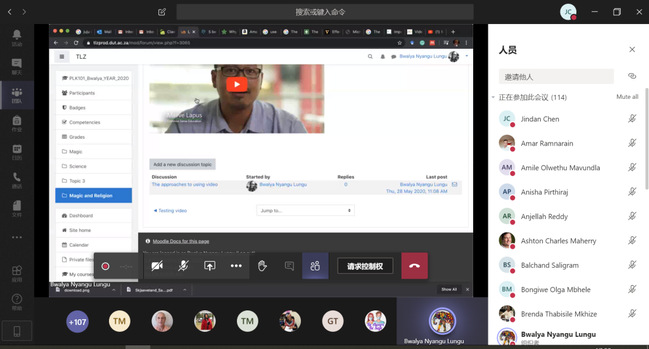 德班孔院第一阶段网络课程从3月中旬开始,主要以Zoom线上直播课为主。而第二阶段网络课程2.0模式则将于6月8日正式铺开,以“录播课为主,直播课为辅”的方式,结合Moodle录播课程管理与Teams直播等功能,实现双平台对接,落实德班理工大学线上教学安排与部署,开展汉语教学。