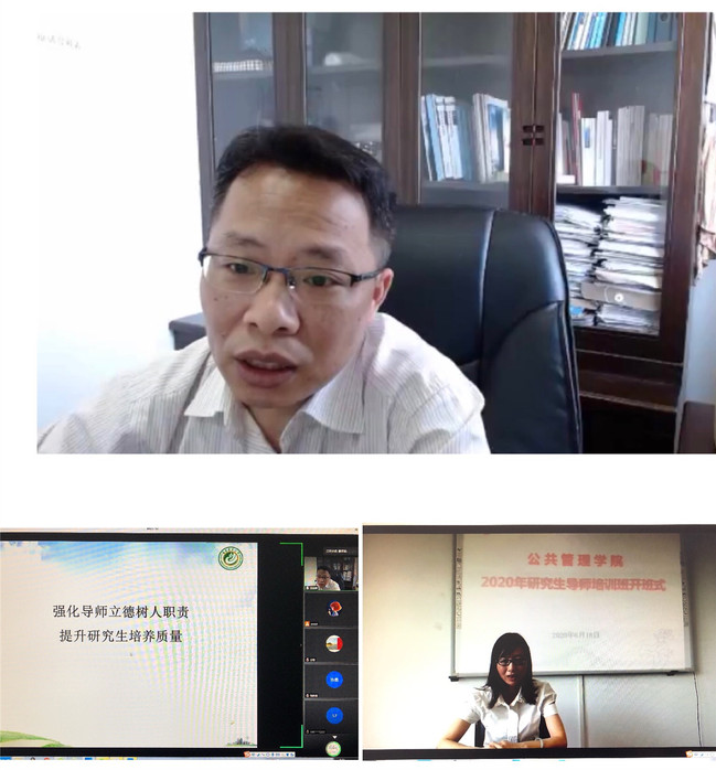 6月18日上午,公共管理学院依托腾讯会议平台举行了2020年研究生导师培训班开班仪式,研究生院副院长黄顺容应邀作了题为“强化导师立德树人职责,提升研究生培养质量”的报告,公共管理学院副院长阮晓菁主持开班式,80多名校内外导师参加。