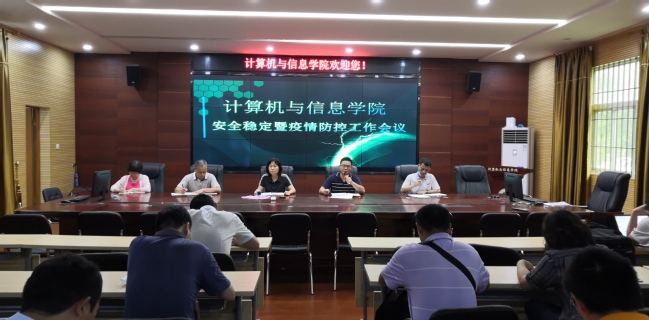 6月23日下午,计算机与信息学院在宝铃楼103室以“线上+线下”的模式召开安全稳定暨疫情防控工作会议,全院教职工参加会议。