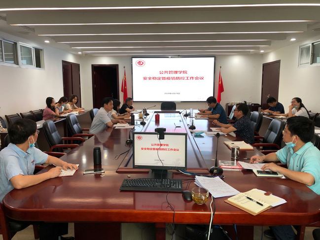 6月24日,公共管理学院召开安全稳定暨疫情防控工作会议,会议由学院党委书记曾起郁主持,学院党政班子成员、科级干部、系主任、辅导员参加会议。