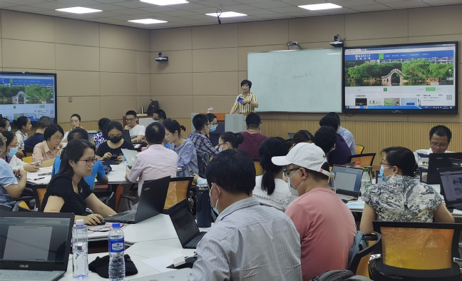 培训会上,陈琼对超星泛雅平台(学习通)的在线考试功能进行了细致而系统的介绍,从题库建设、系统组卷、试卷发放、在线监考、系统阅卷等几个方面介绍了考试系统的基本功能,并对该系统的各项功能进行了详细的在线演示和操作,以身份模拟的培训方式,让参加培训的教师以“学生”、“教师”双重身份进行考试系统的体验。培训期间,教师们就如何高效地进行试卷题目创建、时间设置、防作弊设置等问题,与陈琼进行了积极的互动和交流。
