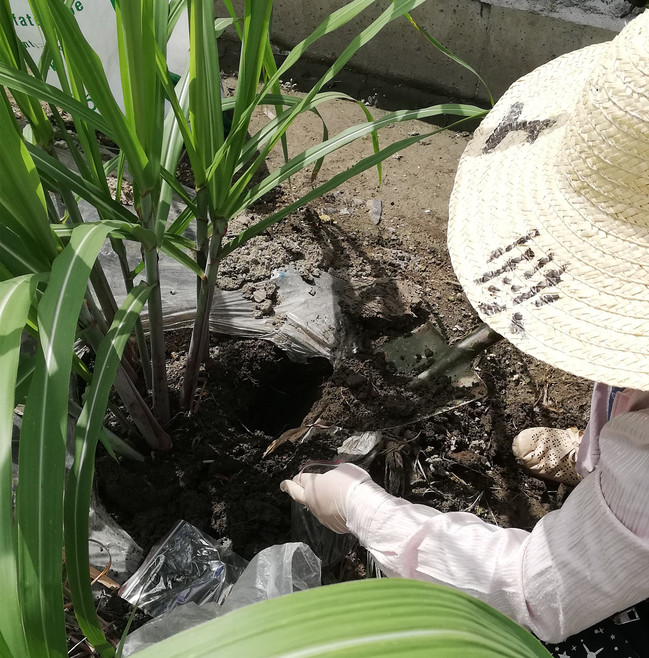 项目组专家在雪蔗田间土壤取样进行线虫调查
