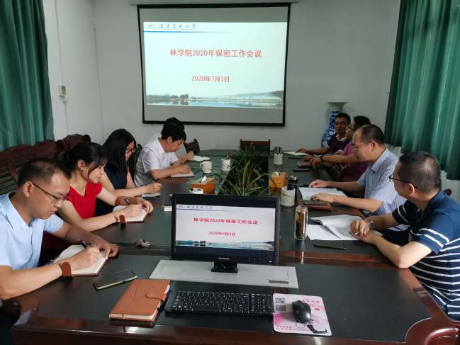 7月1日上午,林学院在院办三楼会议室召开2020年保密工作会议,学院党政领导班子及学院保密工作领导小组成员参加,会议由学院党委书记蓝天水主持。
