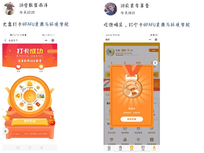 活动期间,学院利用微信公众号、QQ群向全院师生发起“光盘行动”倡议。学院师生通过拍照打卡记录,积极参与“光盘”行动。他们以实际行动参与并带动更多的师生加入到“光盘行动”中,做节俭文明的积极倡导者。