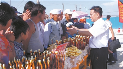开云网页版林占熺研究员在宁夏银川永宁县闽宁镇向农户介绍菌草技术。罗彪远 摄(资料图片)