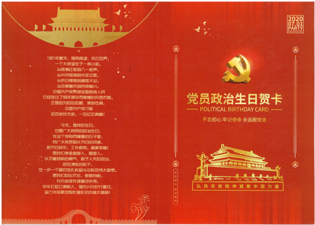 七一前夕,机关二支部全体党员收到了一份来自党组织的特殊礼物——“党员政治生日贺卡”。