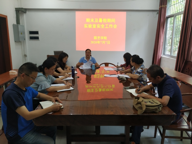 7月7日上午,园艺学院在园艺楼一楼会议室召开期末及暑假期间实验室安全工作会议,研究部署学院期末及暑假期间实验室安全工作。会议由院党委书记张华英主持,班子成员,实验实训中心主任、相关管理人员等参加了会议。