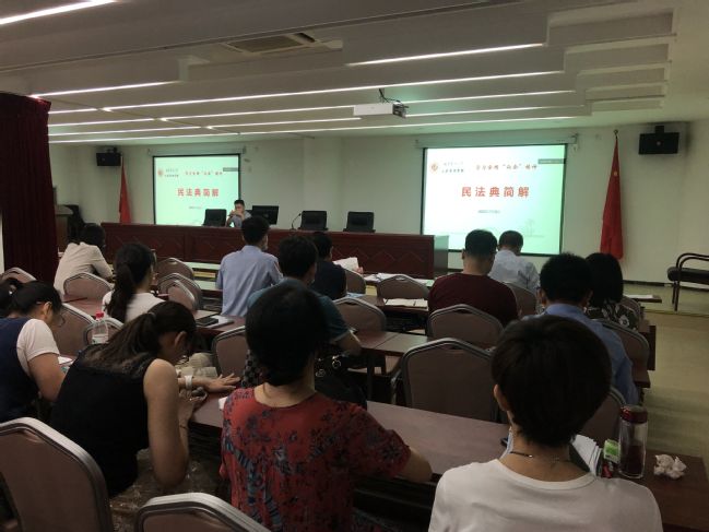 7月9日上午,公共管理学院邀请法学系系主任陈文兴为全院教职工作了题为“民法典简解”的专题辅导报告。