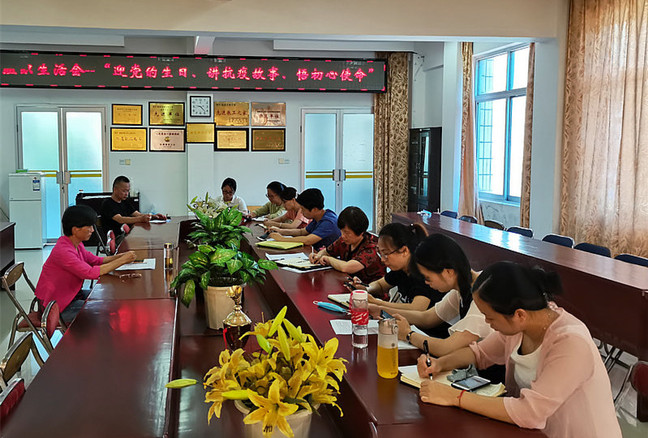 7月7日上午,机关党委第七党支部组织召开了一场以“迎党的生日,讲战疫故事,悟初心使命”为主题的2020年特殊组织生活会。会上,支部全体党员讲述身边耳闻目睹的生动感人抗击疫情故事:有附属幼儿园组织开展疫情防控演练的真实场景再现;有停课不停学的生动“云上六一”、“云上毕业”故事;有支部志愿者为学校毕业班学生返校复学而到机场、火车站迎接返校生的亲身经历;还有讲述身为科研工作者的亲属为研发新冠肺炎病毒核酸检测做出重要贡献的典型事迹……