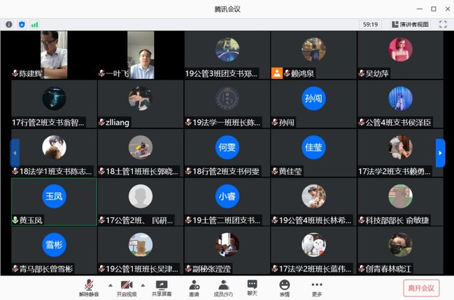 7月17日下午,公共管理学院在线召开期末学生工作会议,安排部署暑期“三下乡”社会实践活动、社会主义核心价值观实践活动、“互联网+”、创青春等创新创业大赛、一“马”当先知识竞赛、安全稳定等工作。会议由学院党委副书记陈建辉主持,各年级辅导员、院团学主要学生干部以及各班班长支书等在线上参加了会议。