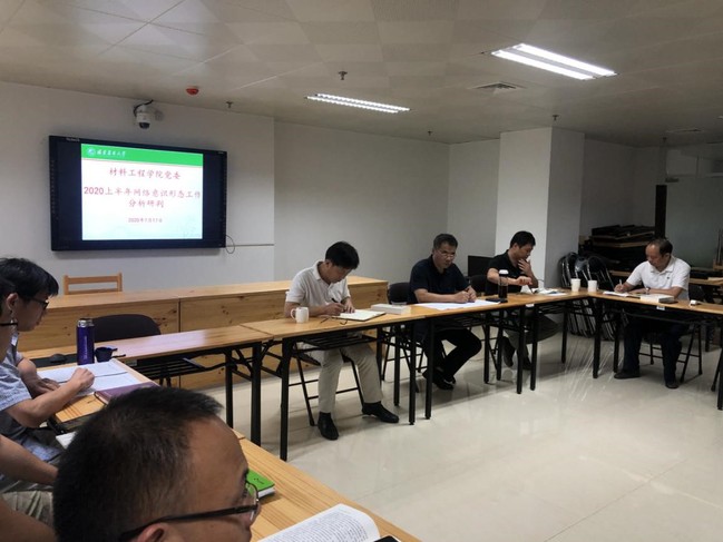 7月17日下午,材料工程学院党委在综合楼423室召开2020年上半年网络意识形态分析研判会。学院意识形态工作领导小组全体成员参加会议。