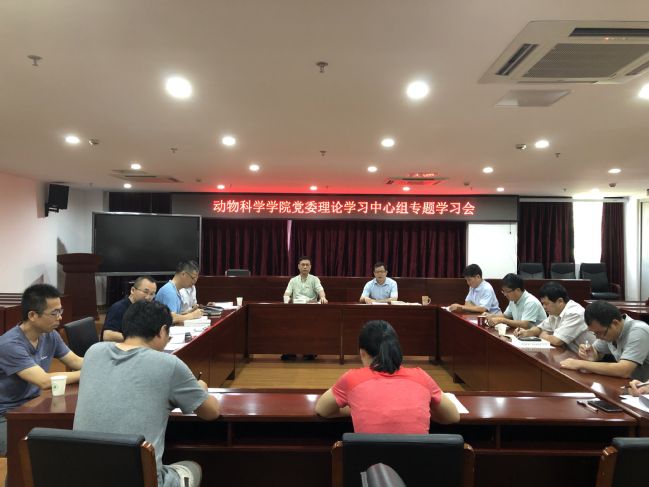 7月22日,动物科学学院党委在学院会议室召开理论学习中心组专题学习会。学院党委委员、领导班子成员、部分党支部书记和科级干部参加了学习会。会议由院党委副书记(主持工作)黄毅军主持。