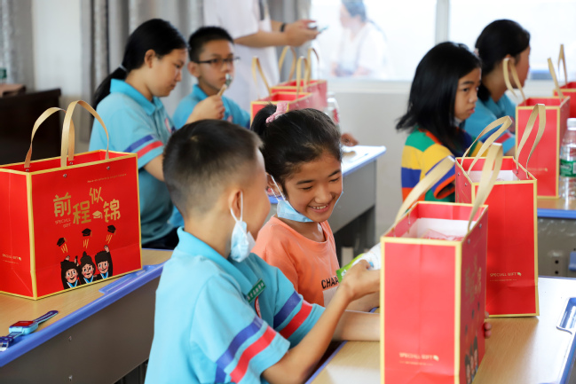 启动仪式最后,陈兆江与宋婉忻一同签订共建协议,协议内容涵盖留守儿童学习辅导、爱心捐赠等。签约仪式结束后,宋婉忻表示,接下来,学校志愿者将通过举办空中课堂、走访以及微心愿捐赠等一系列志愿活动,对留守儿童进行精准帮扶,努力营造全社会关心关爱留守儿童的浓厚氛围,助力他们健康快乐成长。志愿者们还为现场英才实验学校的20名留守儿童送上爱心礼包。