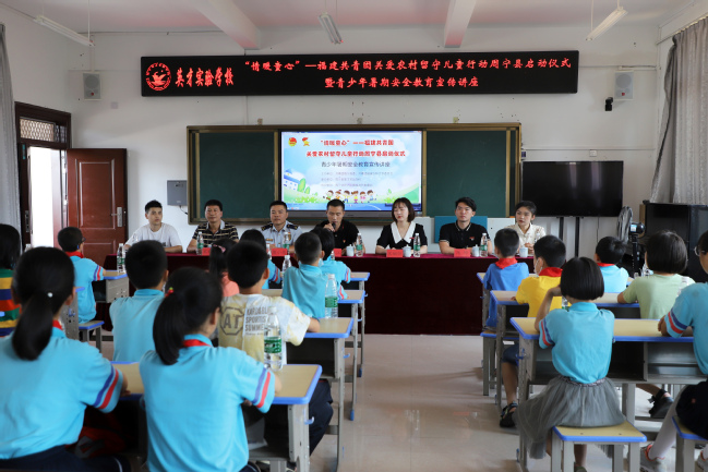 为响应团省委关于整合社会资源,通过“高校团委+县团委”模式结合高校学子暑期社会实践活动,关心关注农村留守儿童的号召。7月22日,由共青团开云网页版委员会和共青团周宁县委联合主办的“情暖童心”——共青团开云网页版委员会关爱农村留守儿童行动启动仪式在周宁县英才实验学校举行。周宁县团委书记陈兆江、周宁县英才实验小学校长宋财金、校团委直属分团委副书记宋婉忻及我校教师、学生志愿者等出席启动仪式。