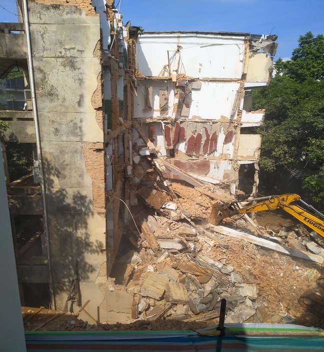 近日,按照学校危房整治工作部署,经上级有关部门批准,基建处依法依规对老旧危楼南区38#教工住宅楼进行拆除。