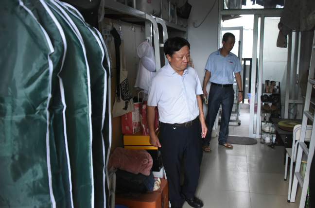 在桃山公寓5号楼、北区学生公寓4号楼,校领导一行认真察看宿舍周边环境卫生,仔细检查宿舍楼公共设施、房间设施和通风情况,了解宿舍修缮进展,强调有关部门要严格按照时间节点完成整改工作,同时结合全国文明校园创建工作,认真做好宿舍楼周边环境卫生整治,努力为返校开学的同学们提供温馨、安全、健康的住宿环境。