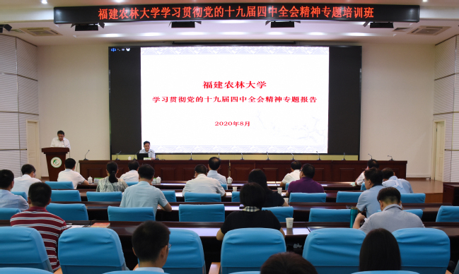 为了深入学习贯彻党的十九届四中全会精神,根据上级要求和校党委部署,8月12日上午,我校学习贯彻党的十九届四中全会精神专题培训班线下集中培训在禧强楼学术报告厅开班。省委宣传部原副部长马照南同志应邀作题为《实现中华民族伟大复兴的制度自信——学习党的十九届四中全会精神》的辅导报告。校党委书记严金静,校党委副书记、校长兰思仁,校党委副书记庄祥生、曾华平,校纪委书记邱应龙,副校长黄炎和、郑宝东出席报告会。报告会由庄祥生主持。