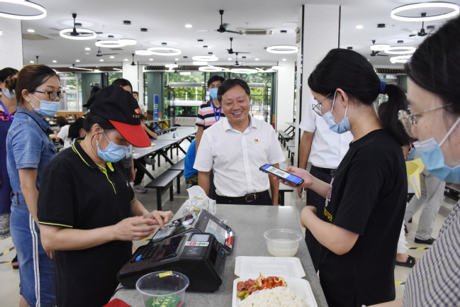 严金静、兰思仁先后来到校西南门、二道口、北区和东苑学生报到点,察看指导返校报到工作,详细了解返校学生的报到情况。校领导每到一处,都与返校学生亲切交谈,详细询问学生返校交通情况、居家学习情况和返校后的学习安排,代表学校向顺利返校的同学们表示热烈欢迎,叮嘱大家要按照学校疫情防护要求做好个人防护,遇到困难要及时向老师反馈,学校将全力帮助解决。随后,校领导来到北区4#、东苑6#学生宿舍,看望慰问刚返校的学生,亲切询问学生返校情况和身体状况,希望同学们合理安排自己的学习与生活,以积极的心态迎接新学期的到来。在北区第一餐厅,校领导仔细检查了食堂的饮食卫生情况,要求相关部门高度重视食品安全和环境卫生,抓好每一个细节与流程,消除食品安全隐患。