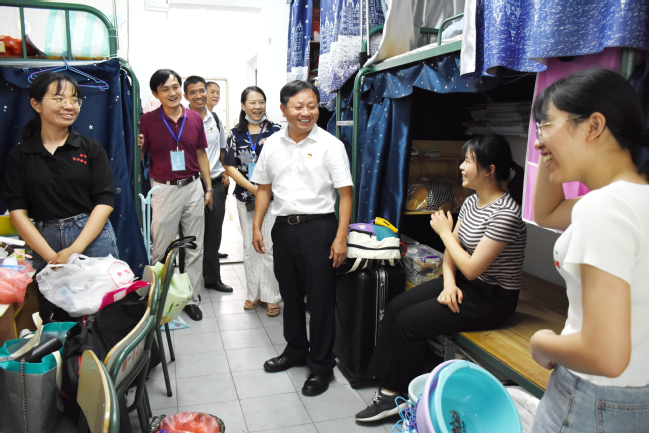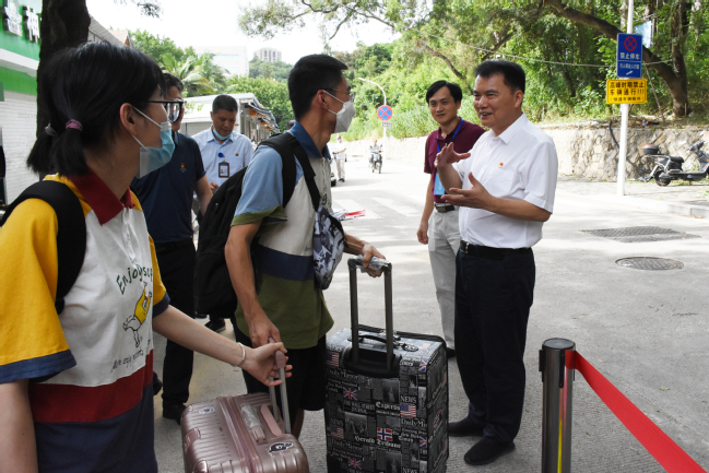 根据学校2020年秋季学期学生分批次错峰返校要求,8月18日,我校迎来秋季开学首批学生返校。校党委书记严金静、校长兰思仁先后深入各报到点、学生宿舍和北区食堂,实地检查指导返校报到工作,亲切看望慰问秋季学期首批返校学生和一线工作人员。
