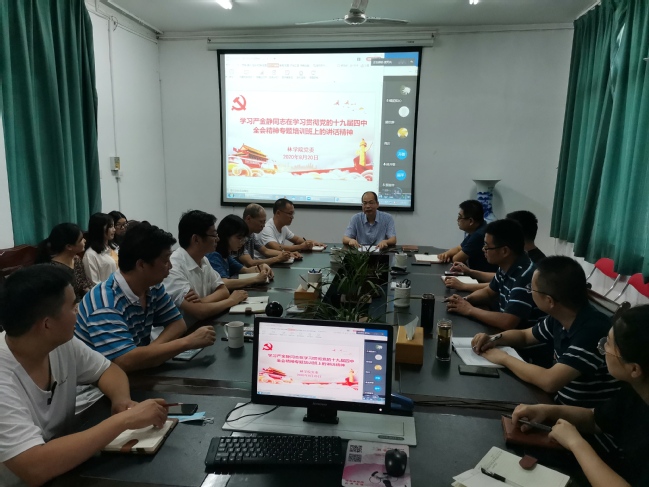 8月20日下午,林学院通过“线上+线下”结合方式召开全院教职工大会,传达贯彻学校学习党的十九届四中全会精神专题培训班总结会精神。