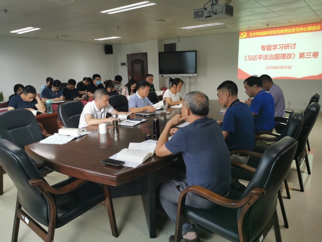 8月20日下午,艺术学院园林学院党委书记陈为德主持召开学院党委理论学习中心组扩大会议,专题学习研讨《习近平谈治国理政》第三卷,全体理论学习中心组成员参加会议并发表学习心得。学院师生党支部书记、科级干部列席会议。