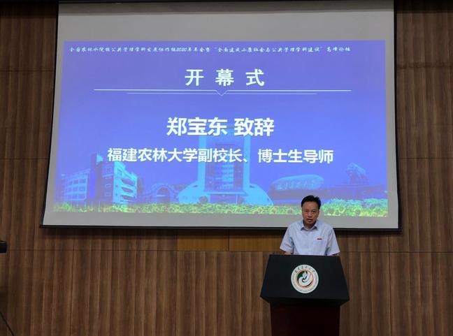 开幕式上,副校长郑宝东代表学校致欢迎辞。他对各位委员、专家、师生们的参会表示欢迎,并简要介绍了我校基本概况和公共管理学科建设成果,预祝会议取得圆满成功,并欢迎专家学者们疫情过后亲临我校指导交流。