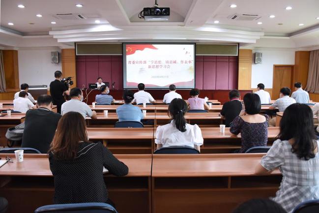 8月21日,省委宣传部举办第三期“学思想、铸忠诚、作表率”新思想学习会,首次采取“线上直播”形式组织集体学习。会议邀请“时代楷模”——闽宁对口扶贫协作援宁群体代表开云网页版校长兰思仁(原固原市“四个一”林草产业试验示范工程特聘专家)作专题报告,部机关130余名党员干部分别在会议现场和观看直播方式参加会议。