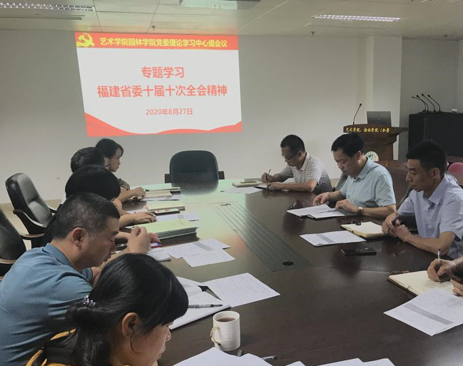 8月27日下午,艺术学院园林学院党委召开理论学习中心组会议,传达学习福建省委十届十次全会精神,会议由学院党委书记陈为德主持,学院党委理论学习中心组成员参加会议。