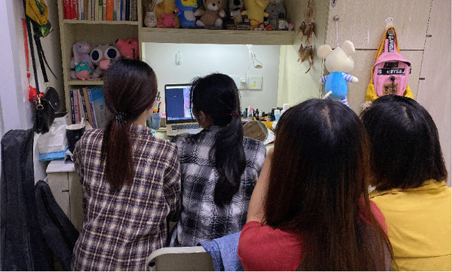 各班团支部认真观看云会议视频