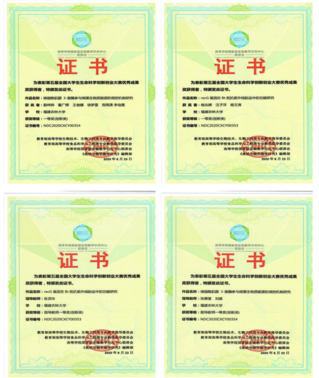 8月23日,由教育部高等学校生物技术、生物工程类、食品科学与工程类专业教学指导委员会,高等学校国家级实验教学示范中心联席会、《高校生物学教学研究》编辑部联合主办的第五届全国大学生生命科学创新创业大赛结果揭晓,经网络评审、初赛和决赛等环节,我校生命科学学院2支参赛团队获得一等奖,团队指导教师张灵玲、张惠莹、刘建获得指导教师一等奖。