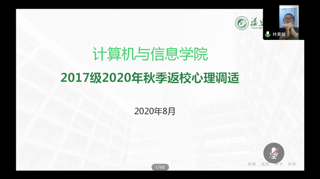 近日,计算机与信息学院通过线上线下等形式上好返校“开学第一课”,组织秋季首批返校学生学习有关疫情防控要求,引导学生做好个人防护,开展防疫卫生和心理健康知识宣传。“开学第一课”由各分管辅导员主讲,2017级本科毕业生和2018级研究生参加了学习。