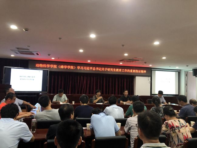 9月3日,动物科学学院(蜂学学院)召开会议学习习近平总书记关于研究生教育工作的重要指示精神。学院领导班子成员黄毅军、徐通明、黄小红、陈大福,以及党委委员、教工党支部书记、政工干部和研究生导师等参加,会议由副院长黄小红主持。