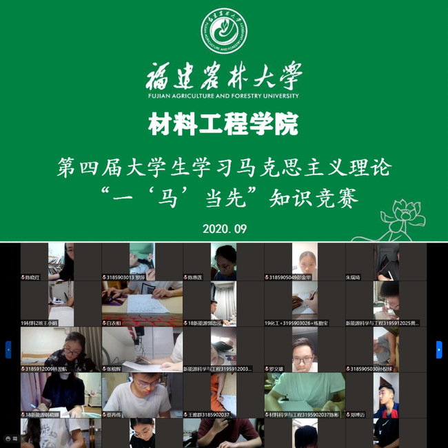 近日,材料工程学院举办第四届大学生学习马克思主义理论“一‘马’当先”知识竞赛,旨在深入实施大学生马克思主义自主学习行动计划,以知识竞赛为手段,激发大学生学习马克思主义理论的热情,感悟马克思主义的真理力量,推动兴起习近平新时代中国特色社会主义思想大学习的热潮。