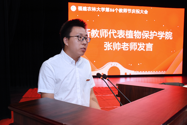 新教师代表——植物保护学院张帅老师发言
