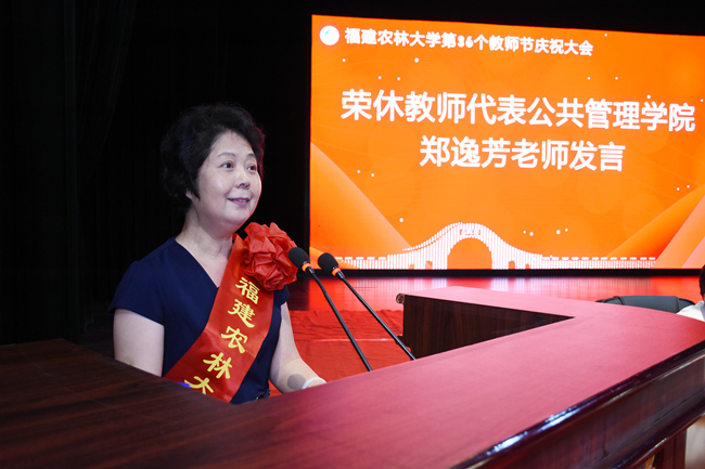 荣休教师代表——公共管理学院退休教师郑逸芳老师发言
