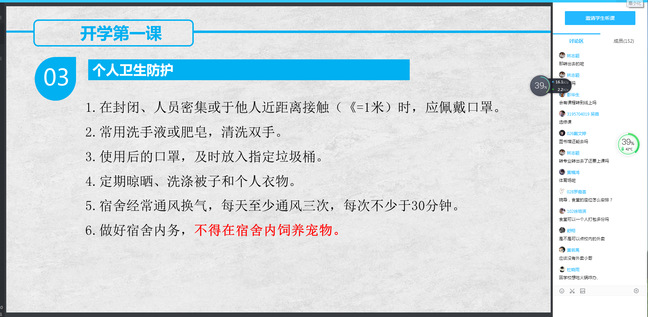 9月7日至8日,资源与环境学院辅导员以年级为单位,通过腾讯课堂、腾讯会议等线上方式,围绕疫情防控、学业管理、安全教育等方面内容,认真组织秋季第二批返校学生上好“开学第一课”。