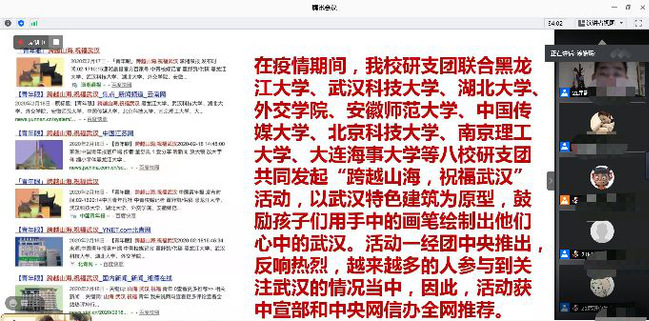 在我校第23届研究生支教团招募之际,为更好地扩大支教团的影响力,招募更多优秀的青年学子加入到服务西部的支教队伍中来。9月7日晚,我校团委在腾讯会议平台上,召开了学校第23届研支团招募线上宣讲会。