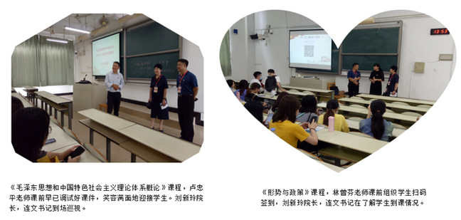 9月7日,新学期开学第一天,马克思主义学院领导及教学管理人员,深入教学一线,巡查并了解当天每一位老师课前组织教学情况。