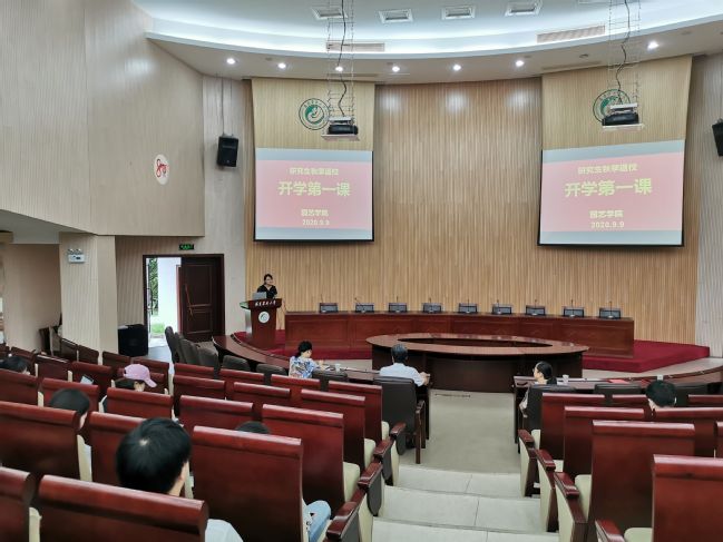 9月9日下午,园艺学院在博学报告厅开展第二批返校研究生“开学第一课”,学院党委书记张华英、院长陈清西、学院党委副书记周娟娟、副院长郭玉琼和研究生导师、全体第二批返校研究生参加会议。周娟娟为同学们上了一堂疫情防控思政课,引导学生们要珍惜疫情防控来之不易的成果,弘扬生命至上、举国同心、舍生忘死、尊重科学、命运与共的伟大抗议精神,以强农兴农为己任,做“一懂两爱”的新型农科人才,在实现中华民族伟大复兴中国梦中贡献青春力量。随后,周娟娟、郭玉琼分别就校园疫情防控知识、疫情防控期间学校管理制度等要求和研究生教学计划、实验安排等进行强调和部署。会后,研究生导师与学生进行了一对一谈心谈话,对学生学习科研任务、心理健康等进行了深入指导。