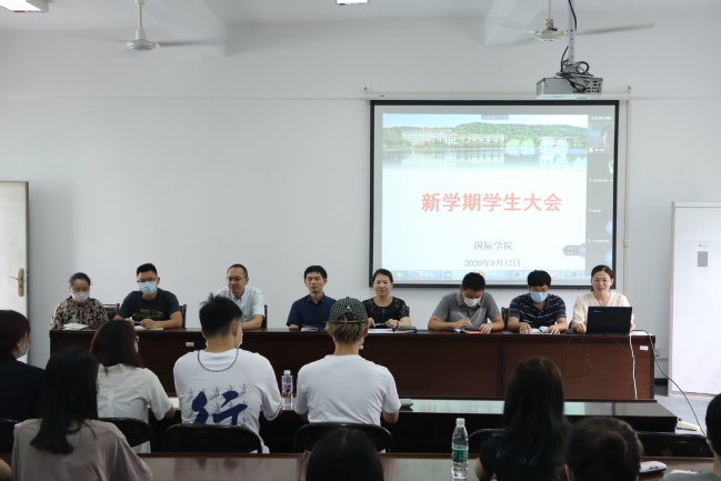 9月12日上午,国际学院组织召开新学期学生大会。院长吴锦程、院党委副书记王小榕、副院长刘敏、全体辅导员、英语专业、中加合作办学项目全体在校生参加会议。会议采用线上线下相结合的形式进行。