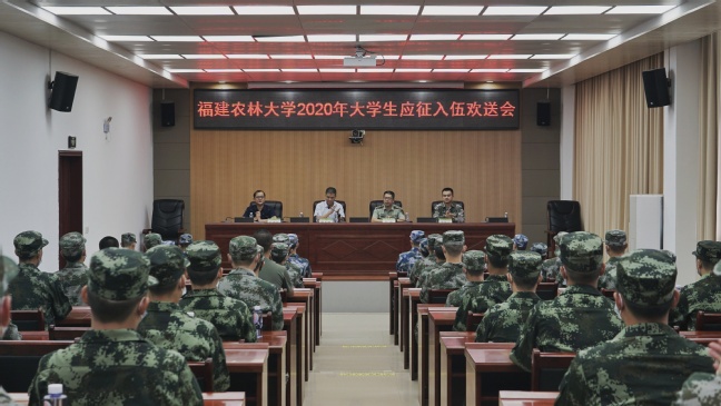9月9日下午,我校在台江区武装部新兵训练营举行2020年应征入伍大学生欢送会,为新入伍大学生送上慰问金并提出了希望,新兵代表表达了保家卫国的初心使命。校人民武装部、金山学院、台江区人民武装负责人和全体新入伍学生参加了欢送会。