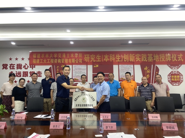 9月15日上午,交通与土木工程学院院长廖飞宇、工程管理系主任李晓娟、姚良云博士、王颖林博士一行赴福建省招标采购集团权属子公司福建工大工程咨询管理有限公司洽谈产学合作,举行教学实践基地授牌仪式。福建省招标采购集团有限公司副总经理张亲议、福建工大工程咨询管理有限公司董事长王文清、总经理翁祯曦、副总经理刘才金及企业相关部门负责人出席座谈会和授牌仪式。