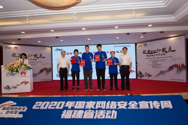 9月12日至13日,由福建省委网信办、福建省教育厅、福建省公安厅联合主办的2020年国家网络安全宣传周福建省网络空间安全技能竞赛(高校学生组暨“黑盾杯”赛项)举办。由我校计算机与信息学院2017级网络工程专业学生张力、吴晨立、李殊荣组成的“0xfafu-1”代表队,荣获本次竞赛一等奖;2018级网络工程专业学生李龙鑫、2018级软件工程专业学生黄嘉隆和2019级电子信息工程专业学生黄高锋组成的“0xfafu_5”代表队,荣获本次竞赛二等奖;计算机与信息学院纪祥敏、赵湘宁两位老师获得“优秀指导教师奖”。颁奖仪式于9月14日在国家网络安全宣传周福建省网络安全论坛上举行。