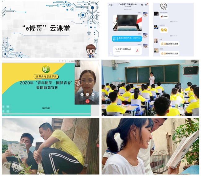 用心培育助人自助新能力。计算机与信息学院学校积极推动保障型资助向发展型资助转变。疫情期间开展“e修哥云课堂”,以网络培训方式,提升学生专业技能;暑期组织开展“青年助学·圆梦青春”暑期资助政策宣讲,让家庭经济困难学生从国家政策的受益者转变成扶贫励志的代言人。经统计,资助政策宣讲受众人数达到1639人,覆盖福建省内全部九个地市,宣讲总时长达412个小时。学生以自己所学,自己所获,服务更多的学子,实现了学生由受助、自助到助人的深刻转变,形成“解困—育人—成才—回馈”的良性循环。